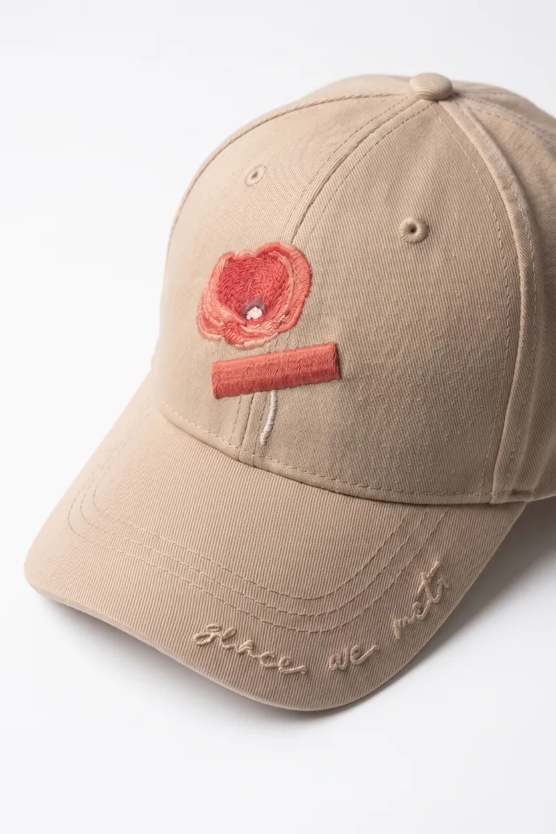 Մինիմալիստական բամբակյա գլխարկ՝ CLÉ-ի ֆիրմային կակաչի ասեղնագործությամբ։