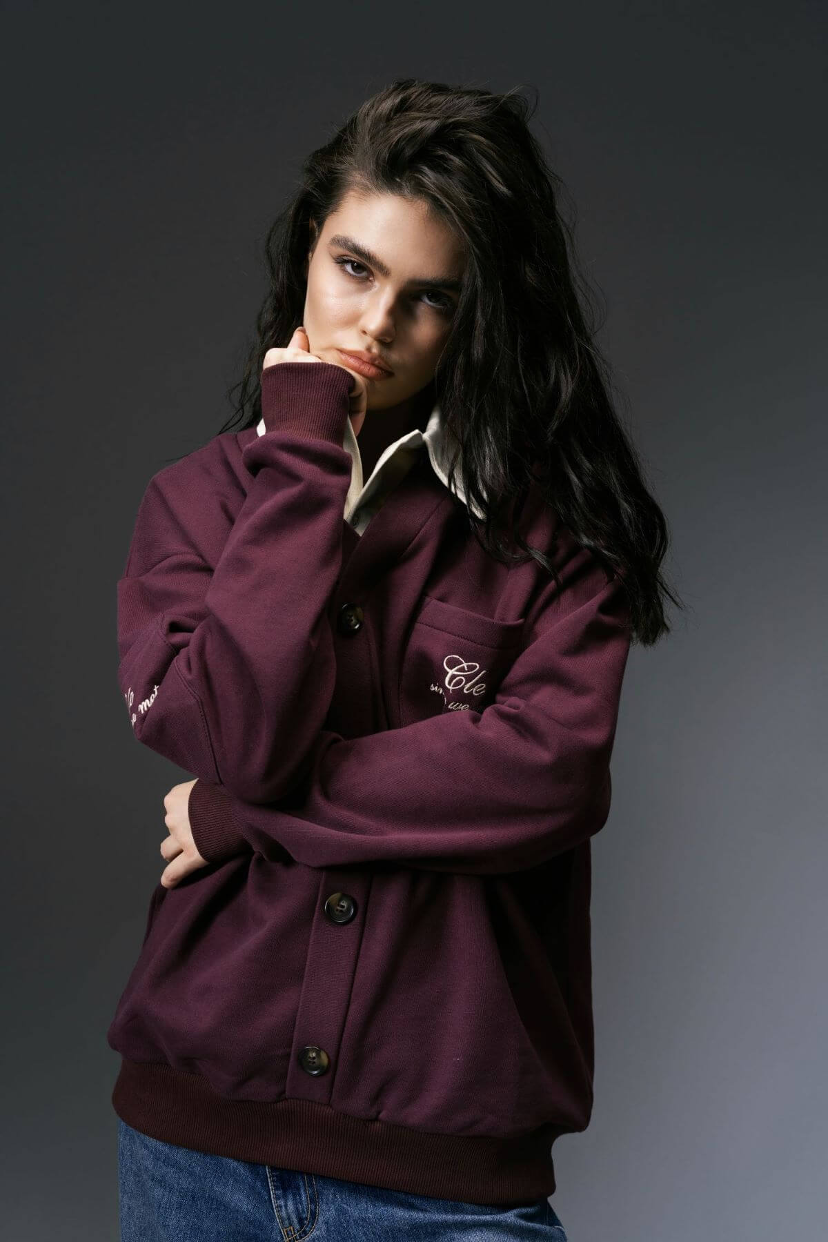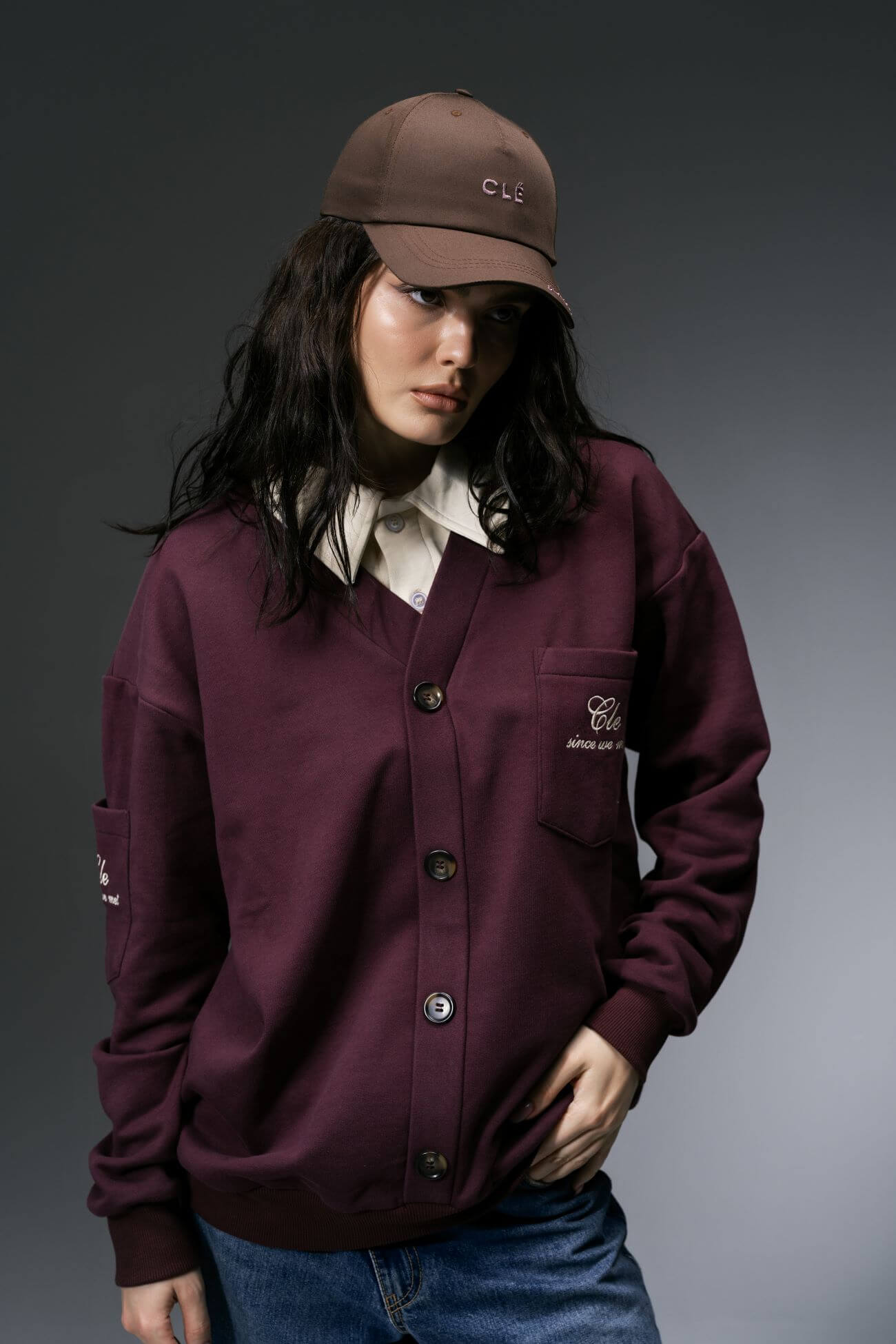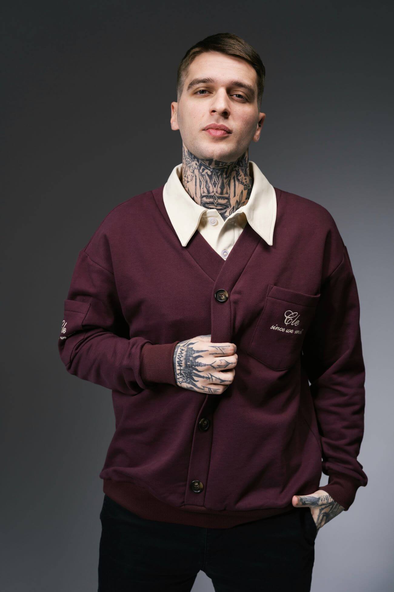 Relaxed burgundy/butter yellow sweatshirt made from 100% cotton.